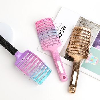Venta directa de fábrica Cepillo de pelo desenredante con ventilación curvada Logotipo personalizado Diseño hueco Peine Cepillo de pelo de masaje de nailon